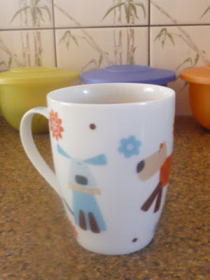 I have a lot of mugs! The cupboard is overflowing. I have them stacked in the back. I find a nice mug I have to have it! Actually, the last one I wanted (about 2 weeks ago!) I saw when I was out shopping with mum. It was all of $2 but I couldn't bring another mug home. So I got her to buy it for me to use at her house. I would have nearly been in trouble if I dared put another in the cupboard. It isn't that I collect them. It's just a cheap way often to buy something pretty. Like the one in this pic, I have a few with dogs on. But my dog love of mugs is waning as there are so many others out there. Also a lot of them are broken so I have less. More that break, the more room for new ones! I guess I will need lots once the boys start doing the dishes!